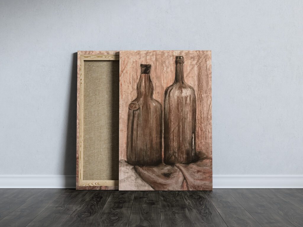 Butelki; wykonane węglem na papierze gramatury 180g/m2. Format 50x70cm. Do oryginału zapewniamy antyramę.