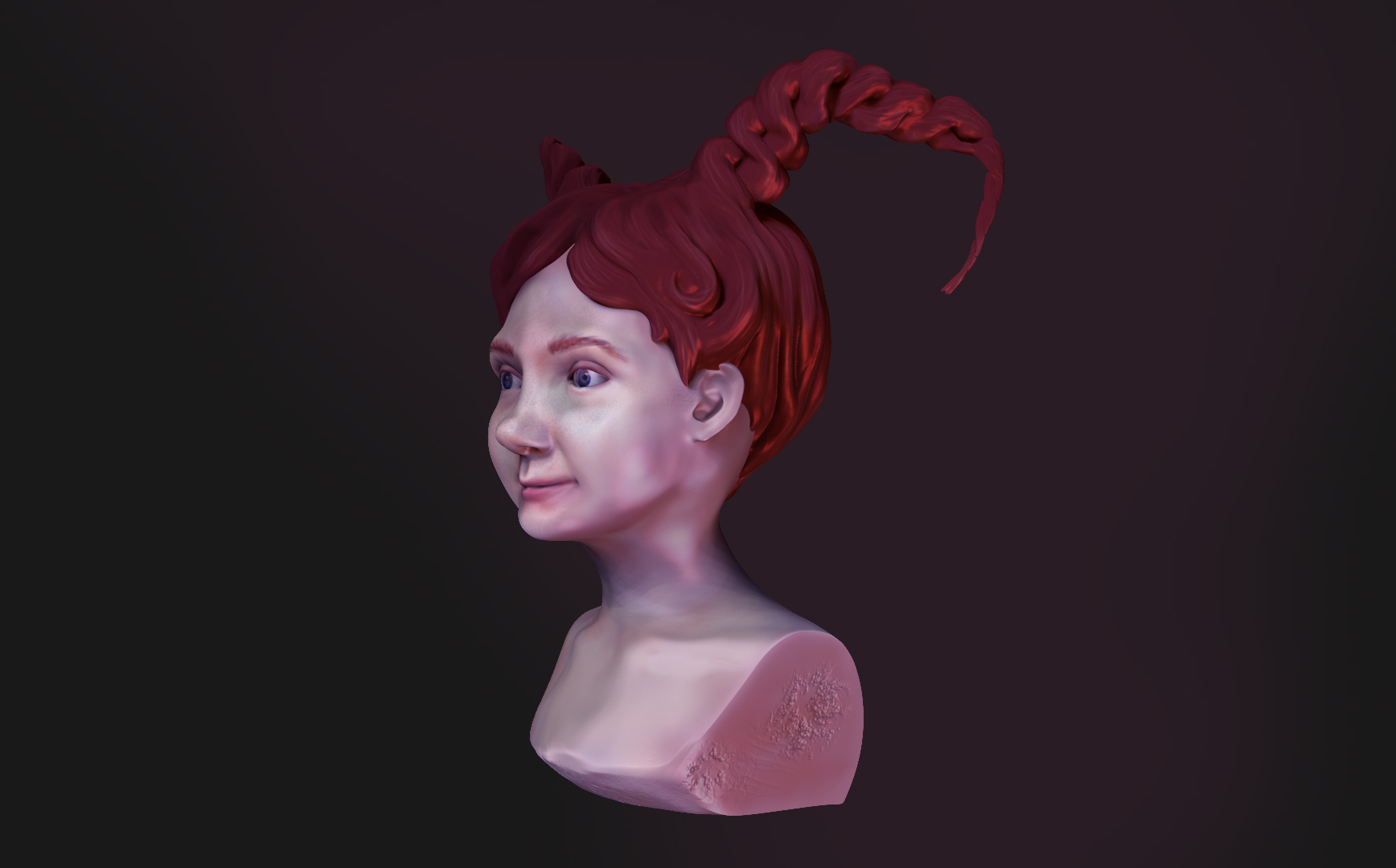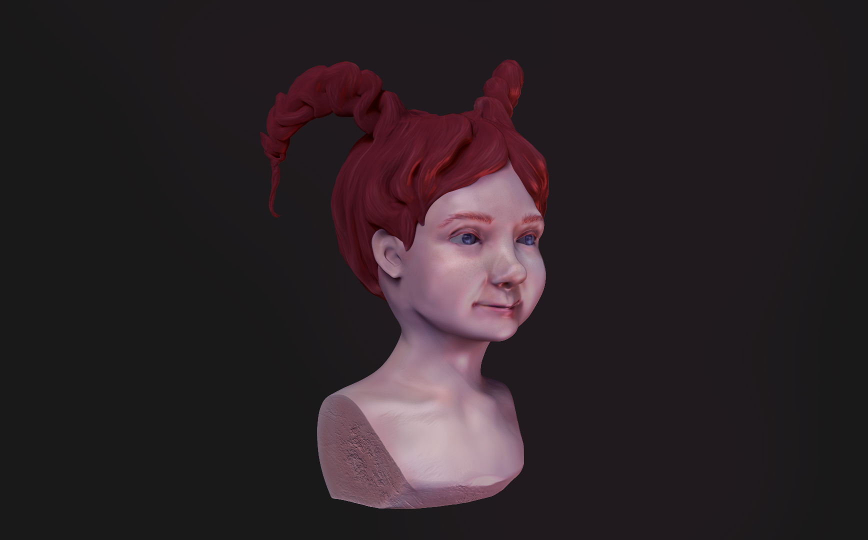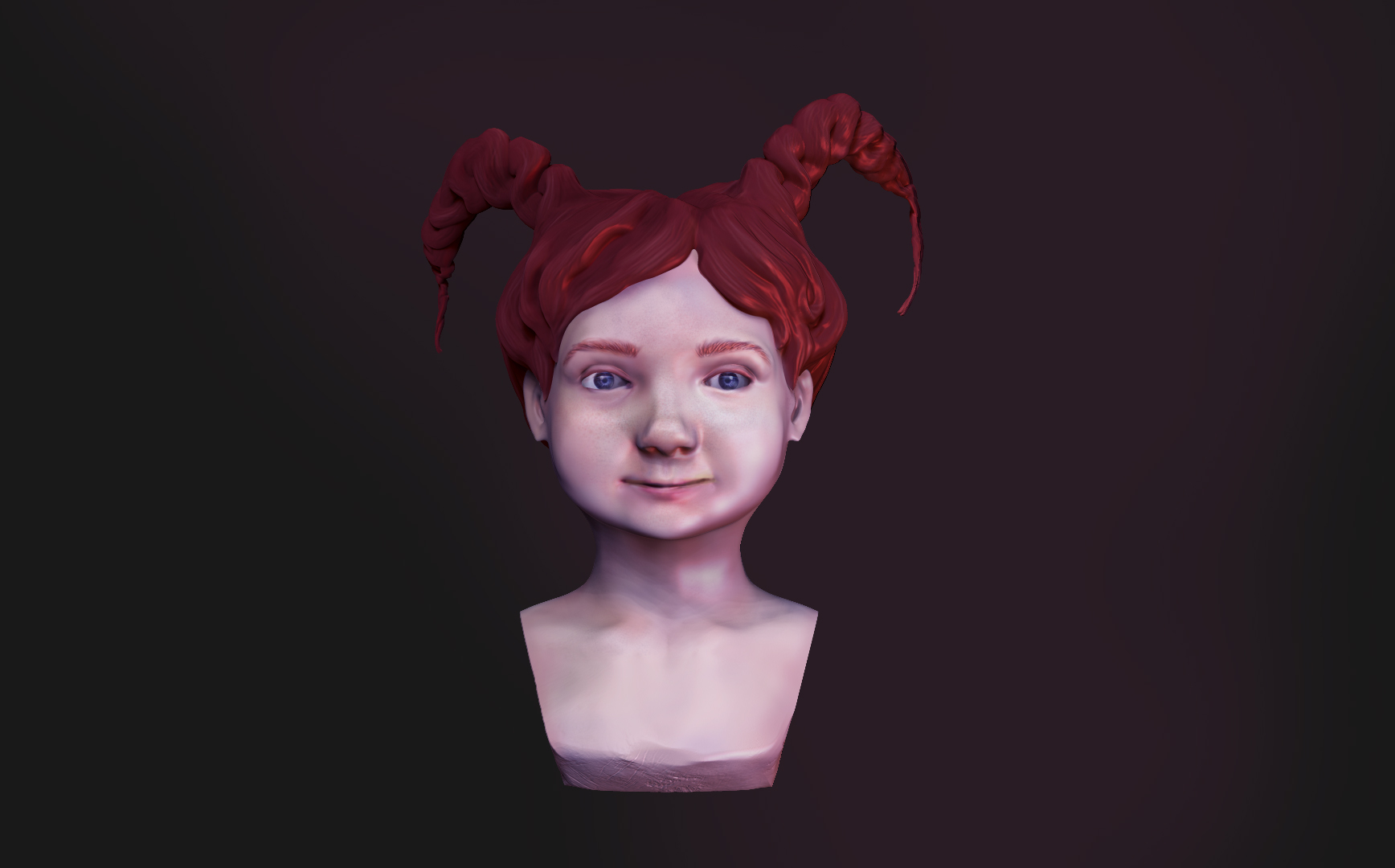 Projekt rzeźby 3D wykonanej w programie ZBrush. Model przedstawia popiersie Pippi Langstrumpf, jako dziecka zostawionego na pastwę własnego losu, wychowywanej bez rodziców. Na renderach poniżej umieszczono 2 wersje renderów: jedną oteksturowaną, drugą zawierającą sam model.