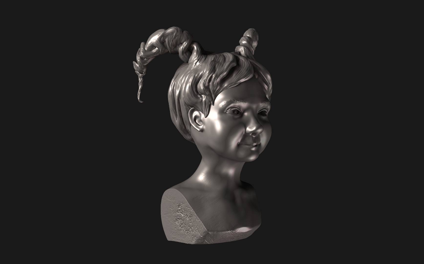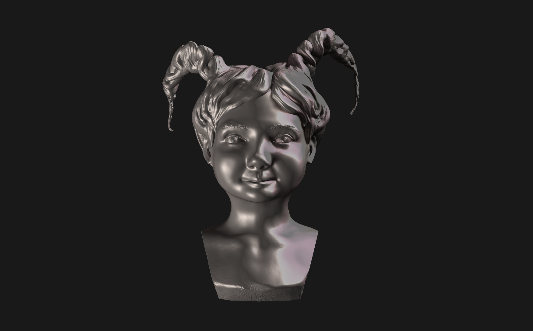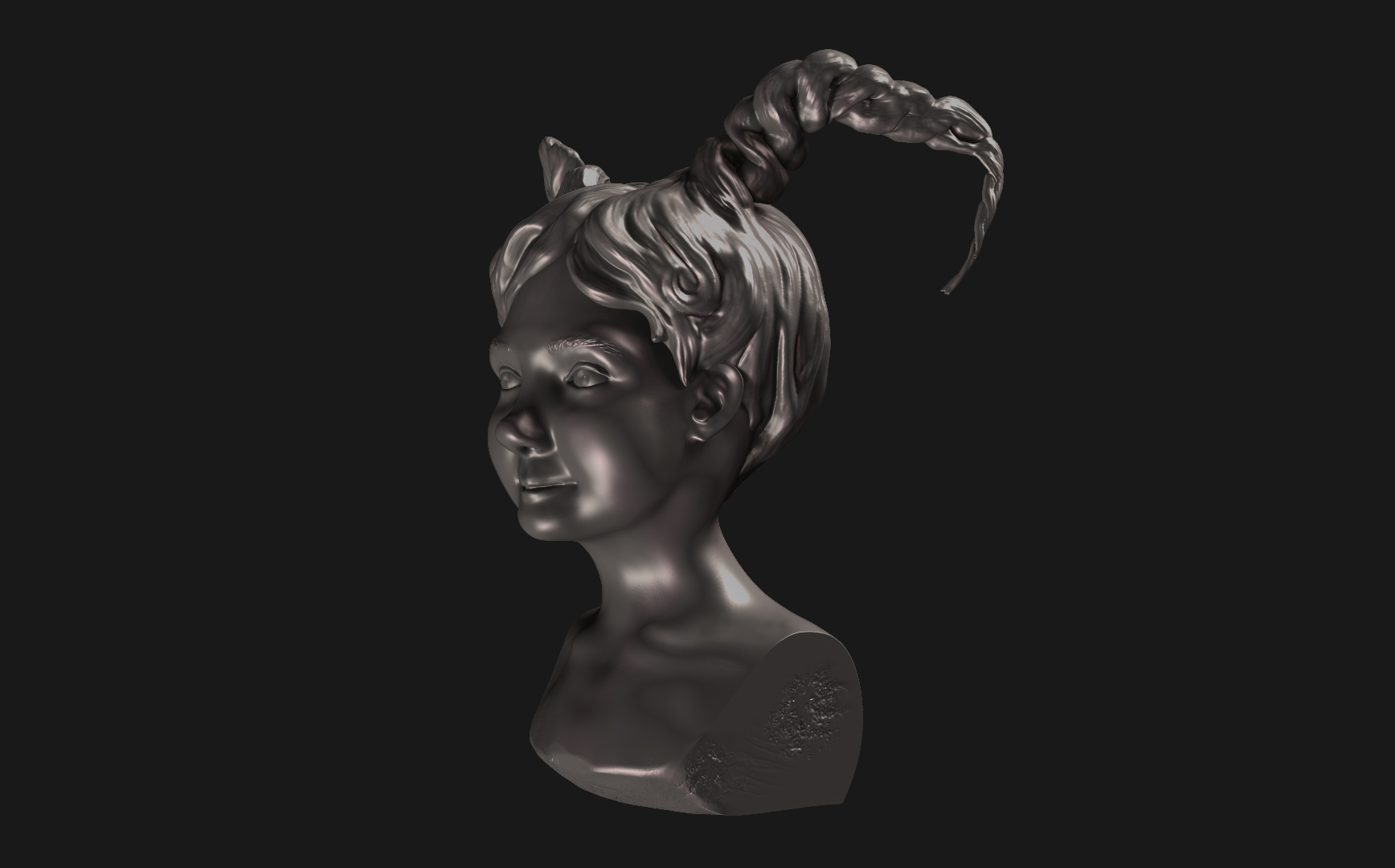 Projekt rzeźby 3D wykonanej w programie ZBrush. Model przedstawia popiersie Pippi Langstrumpf, jako dziecka zostawionego na pastwę własnego losu, wychowywanej bez rodziców. Na renderach poniżej umieszczono 2 wersje renderów: jedną oteksturowaną, drugą zawierającą sam model.